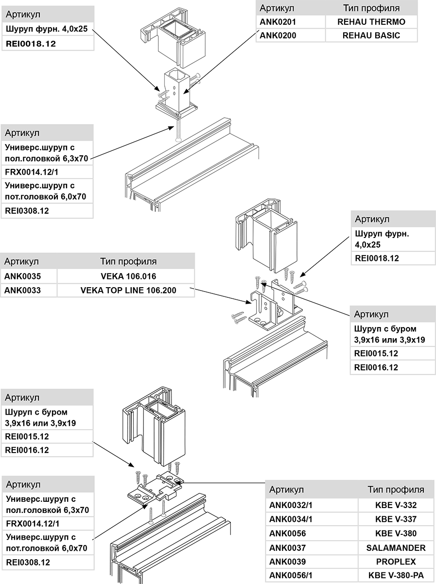 Типы механических соединителей зависят от типа профиля.